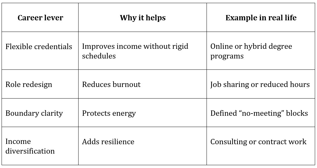 Instead of forcing a traditional ladder climb, many parents find success by rethinking how they grow professionally.